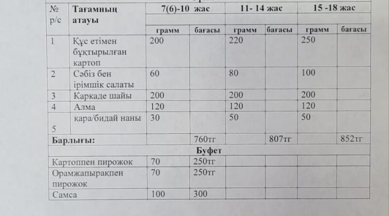 Read MoreҚостанай облысы әкімдігі білім басқармасы «Қостанай ауданы білім бөлімінің Қадыр Кәрімов атындағы жалпы білім беретін мектебі» КММ«Тамақтану» айдары 02.12.2025 жылБүгін