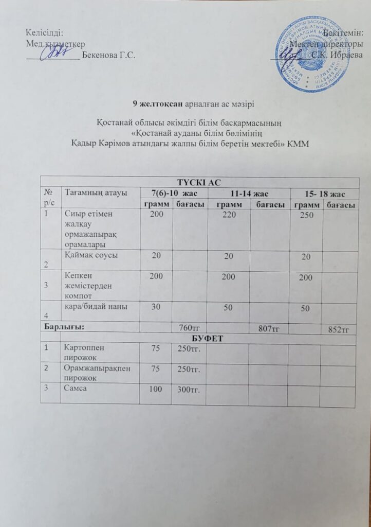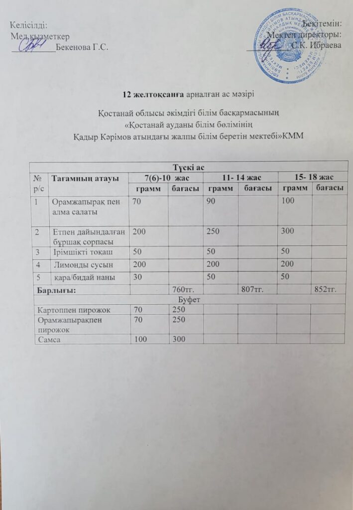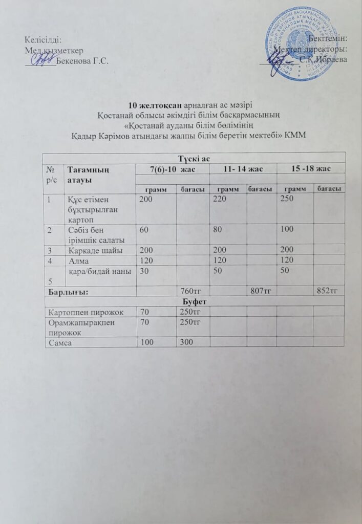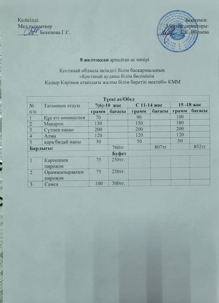 Тамақтануды ұйымдастыру «Тамақтану» 08.12.2025 karim 8-12 желтоқсан күндеріне арналған күнделікті ас мәзірі
